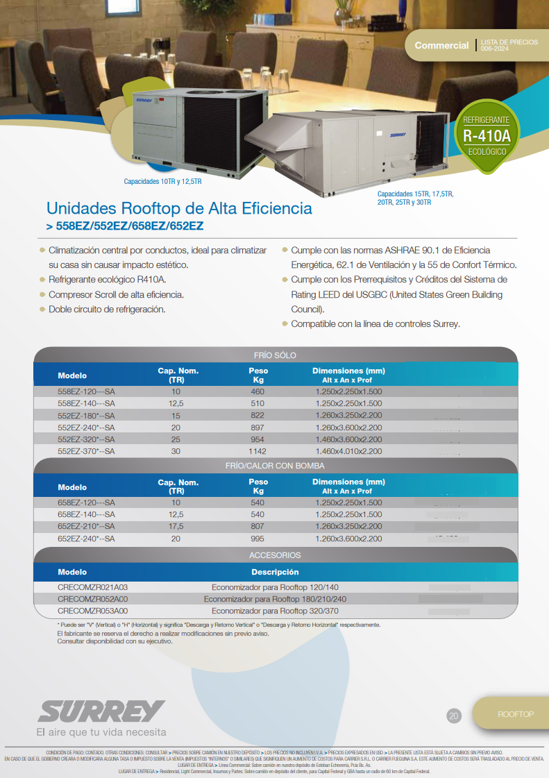 SURREY Unidades Rooftop de Alta Eficiencia > 558EZ/552EZ/658EZ/652EZ