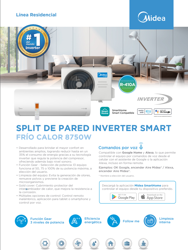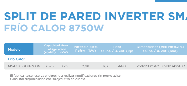 MIDEA - SPLIT DE PARED INVERTER SMART FRIO CALOR 8750W