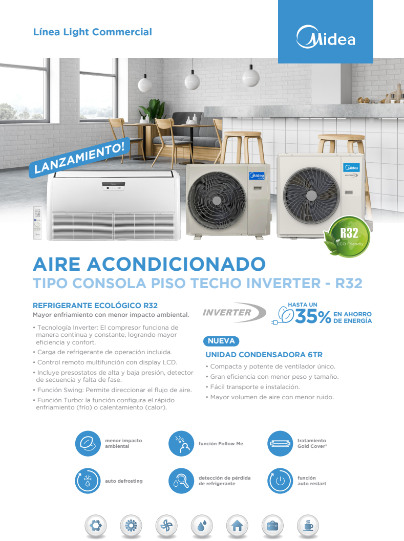 MIDEA - AIRE ACONDICIONADO TIPO CONSOLA PISO TECHO INVERTER - R32