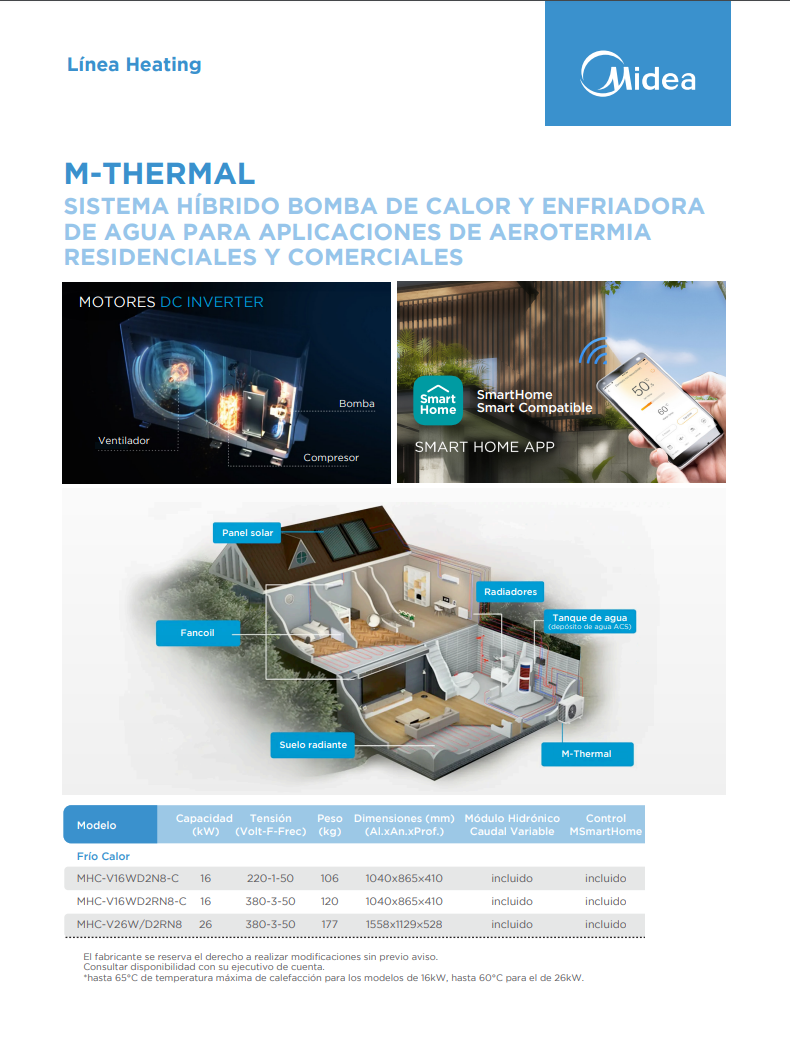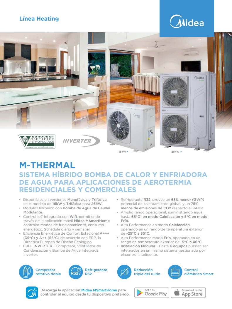 MIDEA - M-THERMAL SISTEMA HIBRIDO BOMBA DE CALOR Y ENFRIADORA DE AGUA PARA APLICACIONES DE AEROTERMI