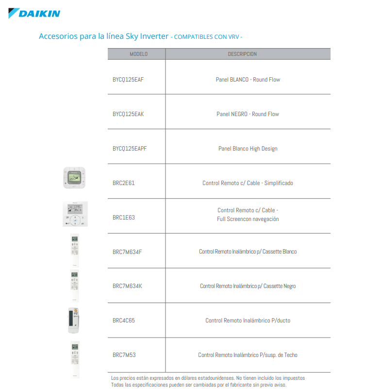 DAIKIN - Accesorios para la linea Sky Inverter COMPATIBLES CON VRV