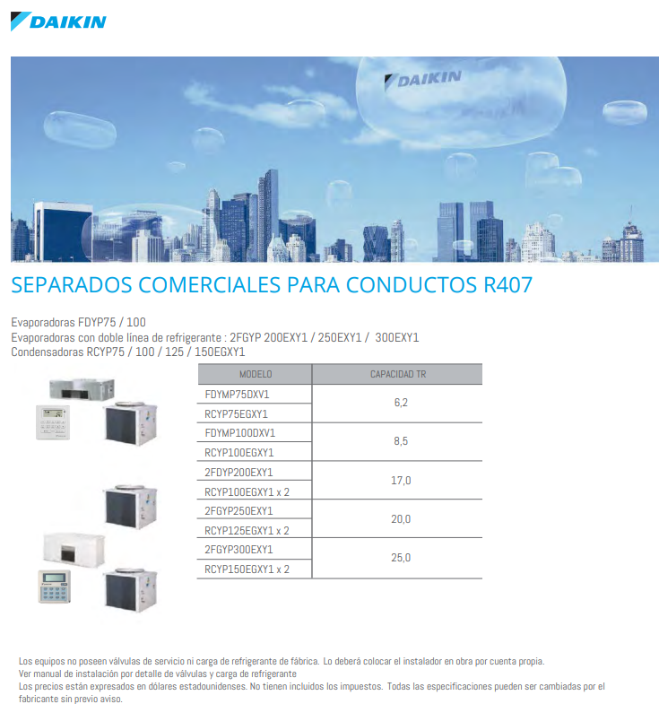 DAIKIN - SEPARADOS COMERCIALES PARA CONDUCTOS R407